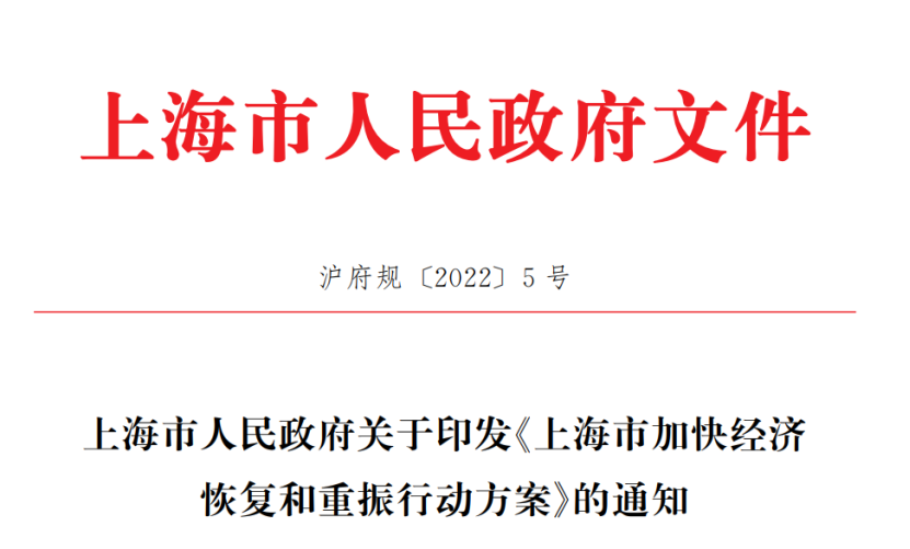 5月29日,上海市人民政府发布《上海市加快经济恢复和重振行动方案》(以下简称“《方案》”),并在上海市新冠疫情防控工作第199场新闻发布会上介绍相关内容。《方案》共包括八个方面、50条政策措施,主要内容包括助企纾困、复工复产复市、稳外资外贸和促消费投资、强化支撑保障等“四大板块”。