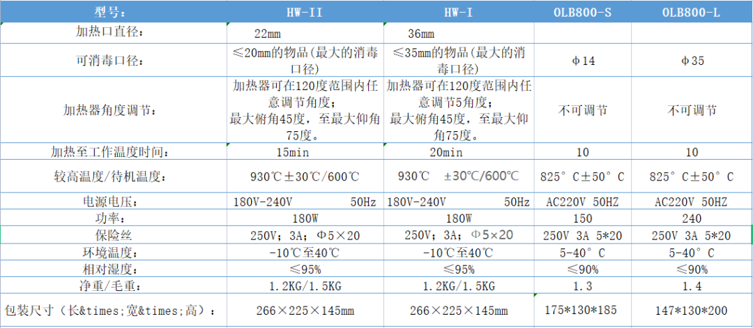 五、红外线灭菌器各型号及参数比较