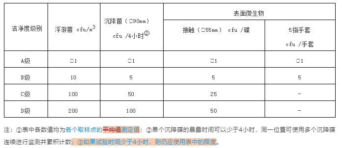 各洁净级别环境微生物监测的动态标准