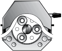 蠕动泵的工作就像用手指夹挤一根充满流体的软管,随着手指向前滑动管内流体向前移动。蠕动泵也是这个原理只是由滚轮取代了手指。通过对泵的弹性输送软管交替进行挤压和释放来泵送流体。就像用两根手指夹挤软管一样,随着手指的移动,管内形成负压,液体随之流动。