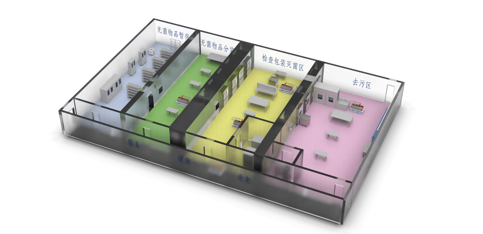 无菌物品暂存区:为存放、保管、发放无菌物品的区域,为清洁区域。