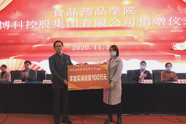捐赠仪式上,博科集团中安公司市场部代表董雪表达了对山东商业职业技术学院食品药品学院学生综合素质的认可,学院学生代表也再次感谢博科集团对学院的仪器捐赠。
