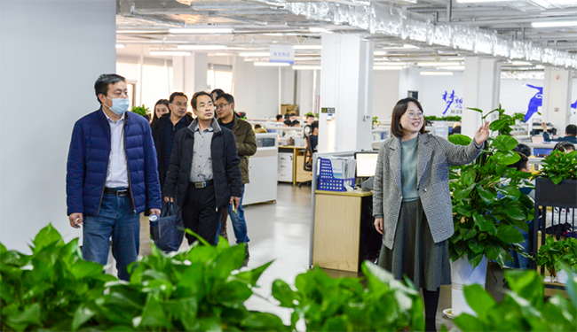 首先,在人力资源总经理王正霞的带领下,张书记一行参观了博科共享展厅及部分办公区域,王总对公司产品情况、发展模式、未来发展等进行了详细介绍。