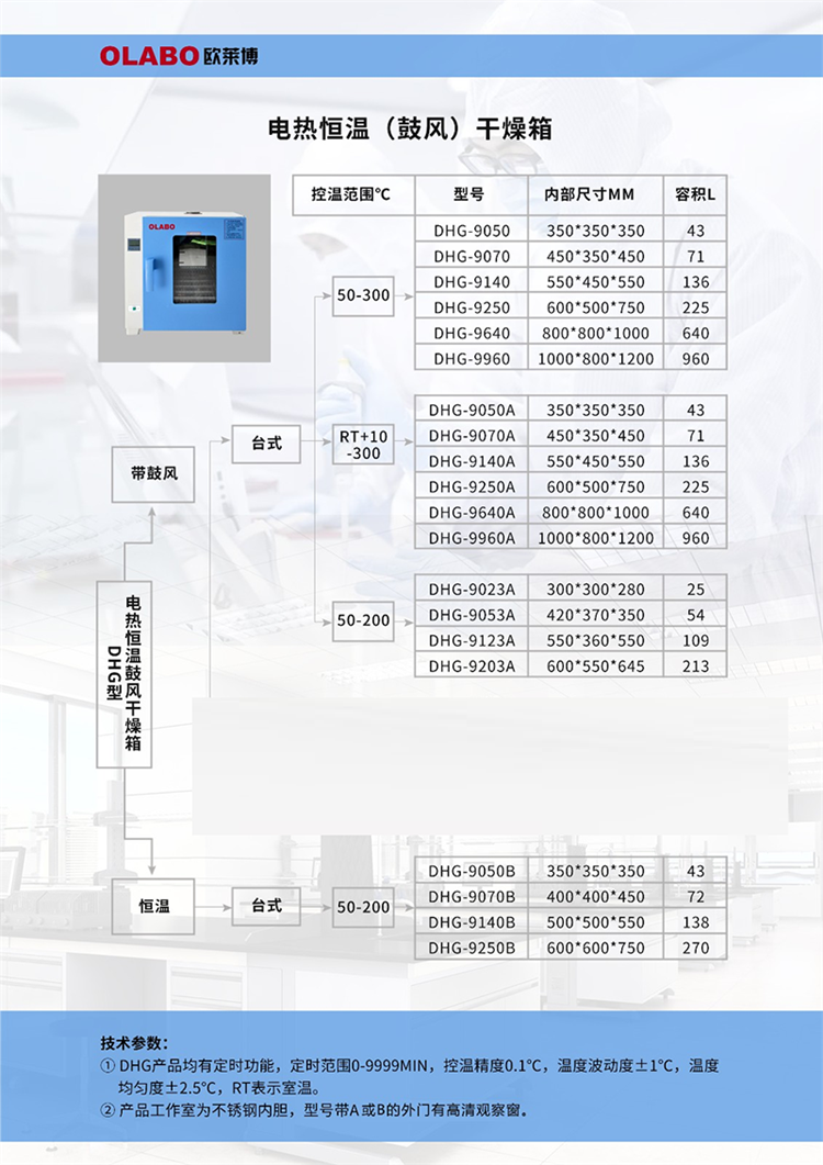 欧莱博鼓风干燥箱型号齐全,价格优势大,厂家直发,发货速度快!不锈钢工作室,微电脑控温仪,超温保护,传感器断路/短路保护,自动报警。可供工矿企业、化验室、科研单位等作干燥、烘焙、熔蜡、灭菌之用。
