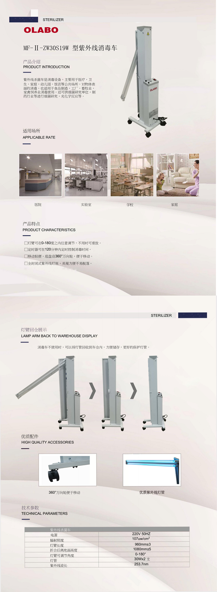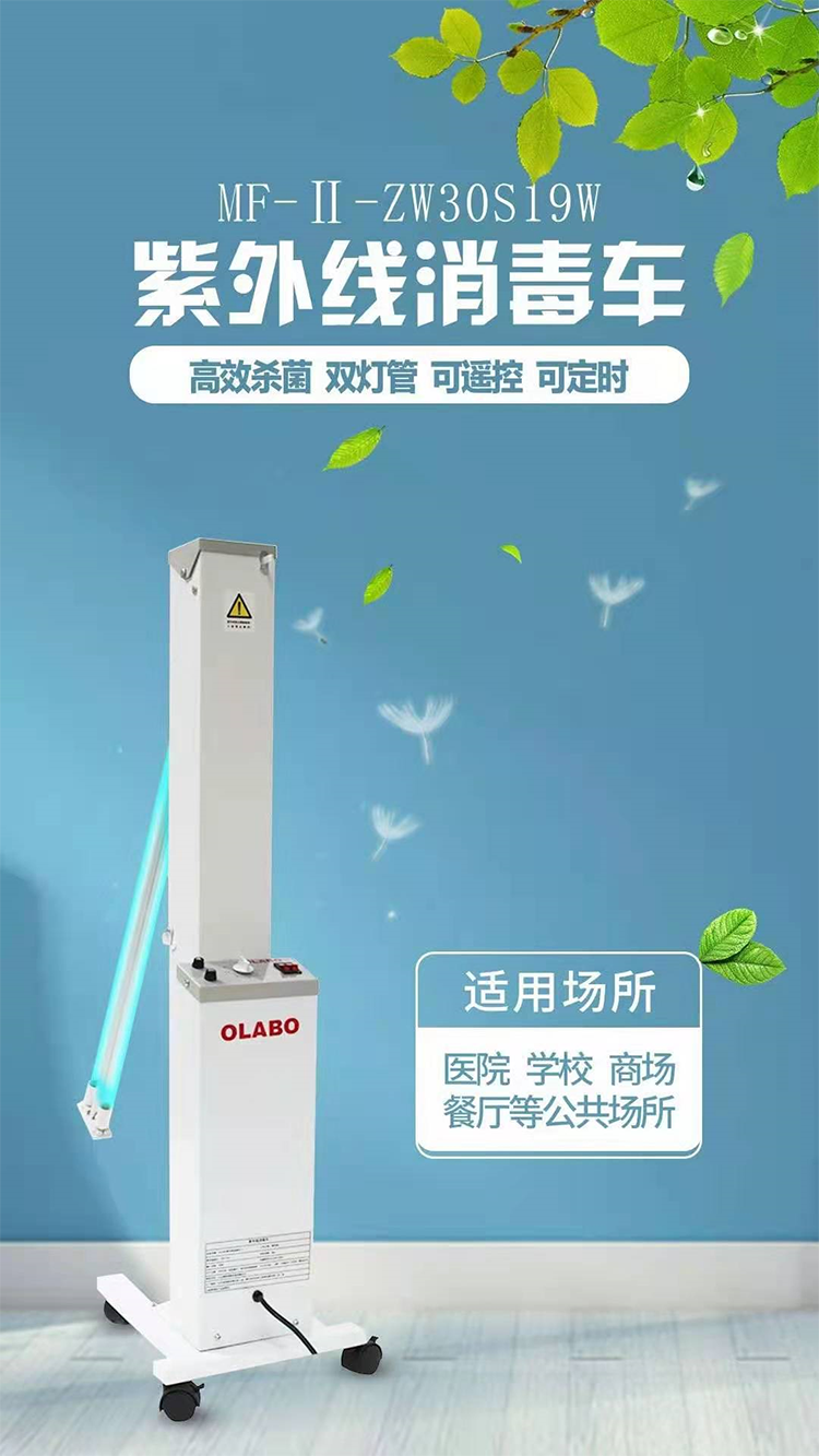 欧莱博紫外消毒车MF-Ⅱ-ZW30S19W工厂现货,双灯管大功率,360°万向轮底座,紫外线灭菌可定时,价廉质优,一年保修~病毒肆虐,科学防控,你还在等什么!