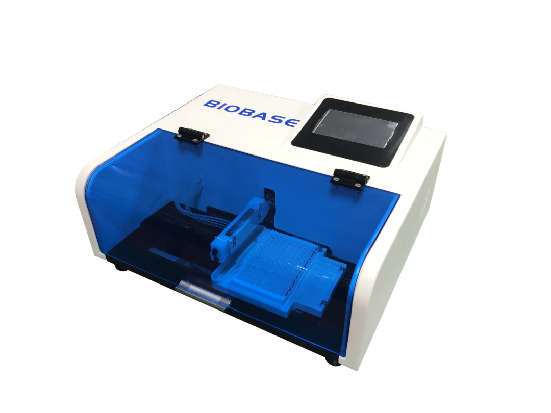 博科BIOBASE-9621自动洗板机 可以按照每排清洗8孔或12孔的方式清洗96孔或48孔酶标板,清洗头分12道 8道,96孔板,残液量为小于2ul/孔。