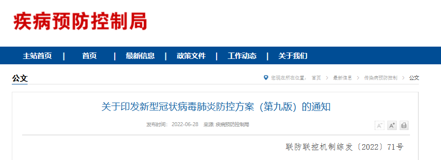 6月28日,国家卫健委发布《关于印发新型冠状病毒肺炎防控方案(第九版)的通知》