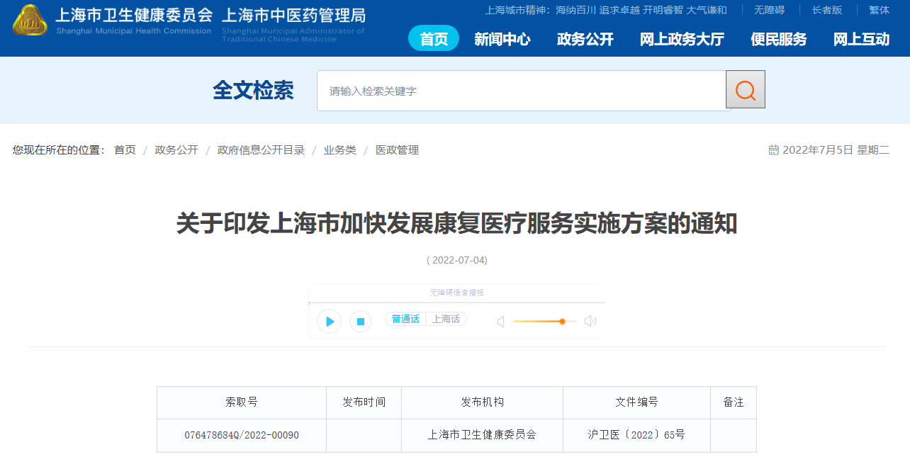 最新!七部门联合印发,提升上海康复医疗发展能力