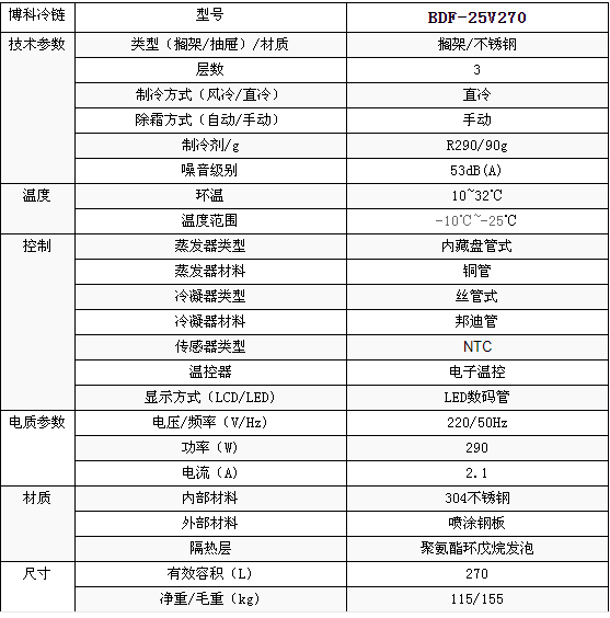 博科BDF-25V270立式低温冰箱