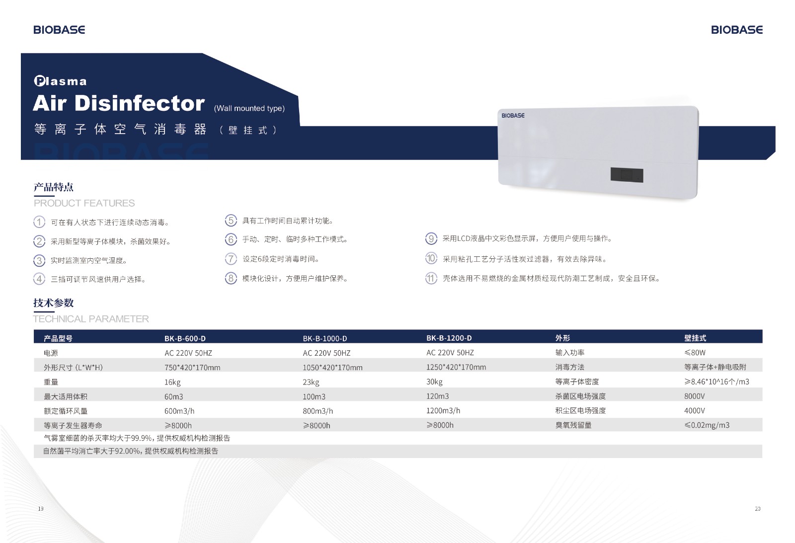 自然菌平均消亡率大于90.00%(实际≥95.48%),(≤113CFU/m³)提供权威机构检测报告。 |