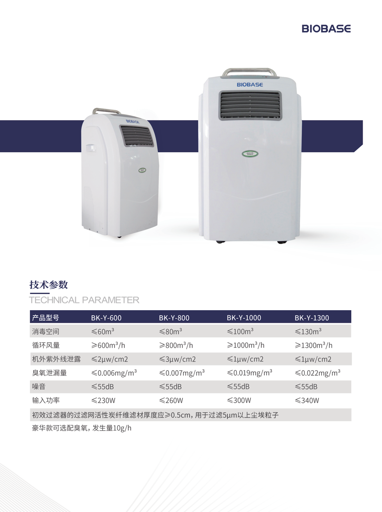 额定循环风量:≥1300 m3/h(循环风量≥适用体积的10倍) |