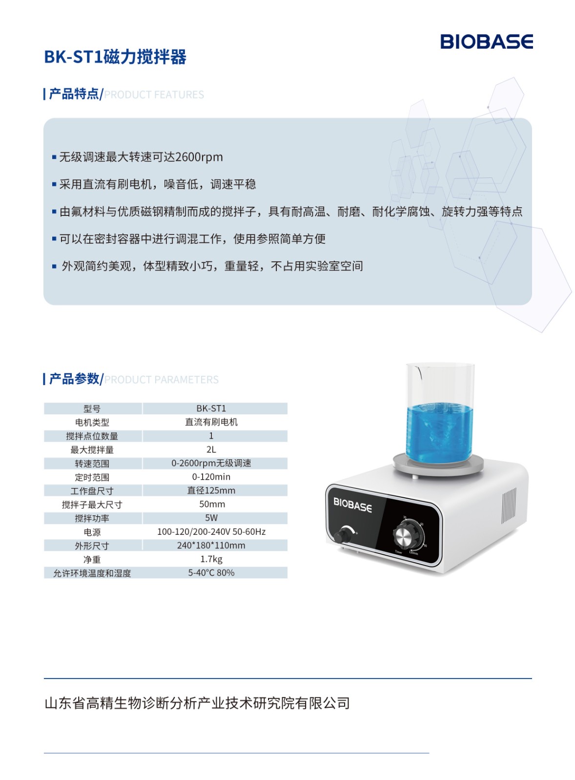 磁力搅拌器BK-ST1技术参数