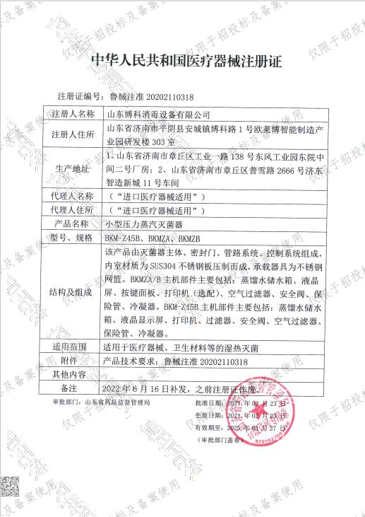 灭菌器内腔尺寸:φ247mm*470mm(直径*锅深)