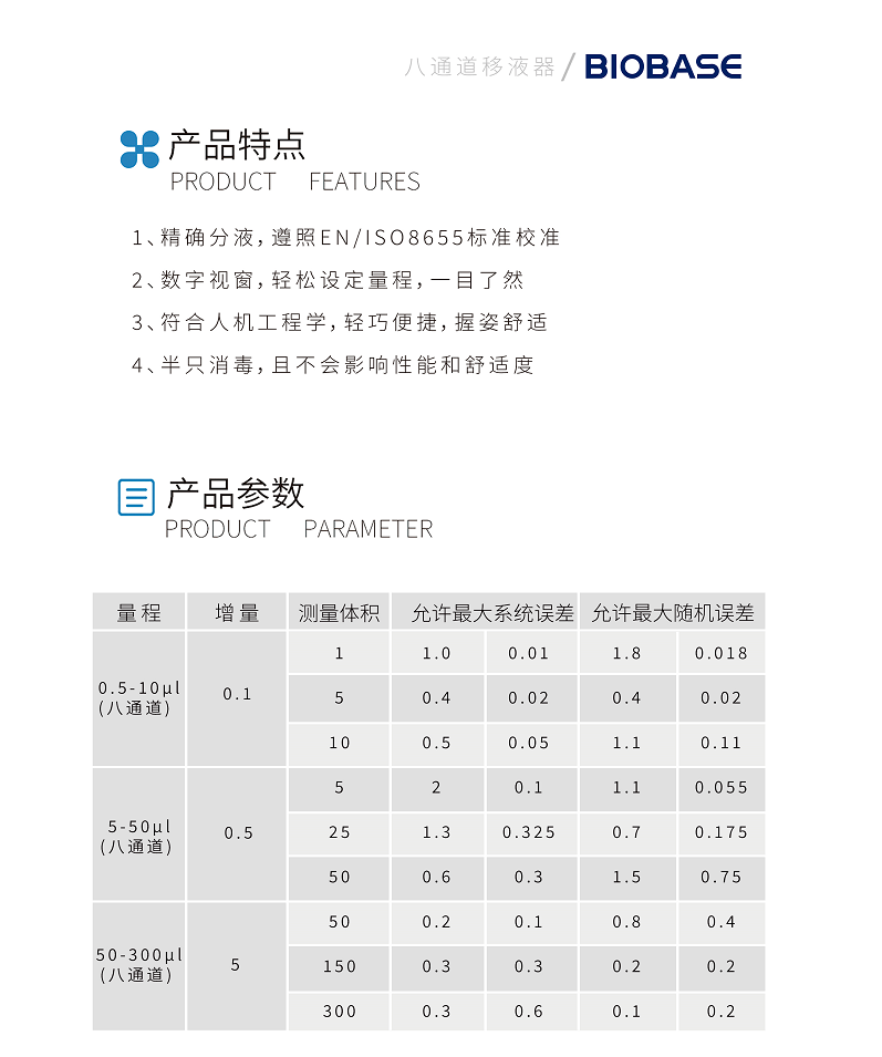 博科/BIOBASE半只消毒8道可调移液器5-300μl