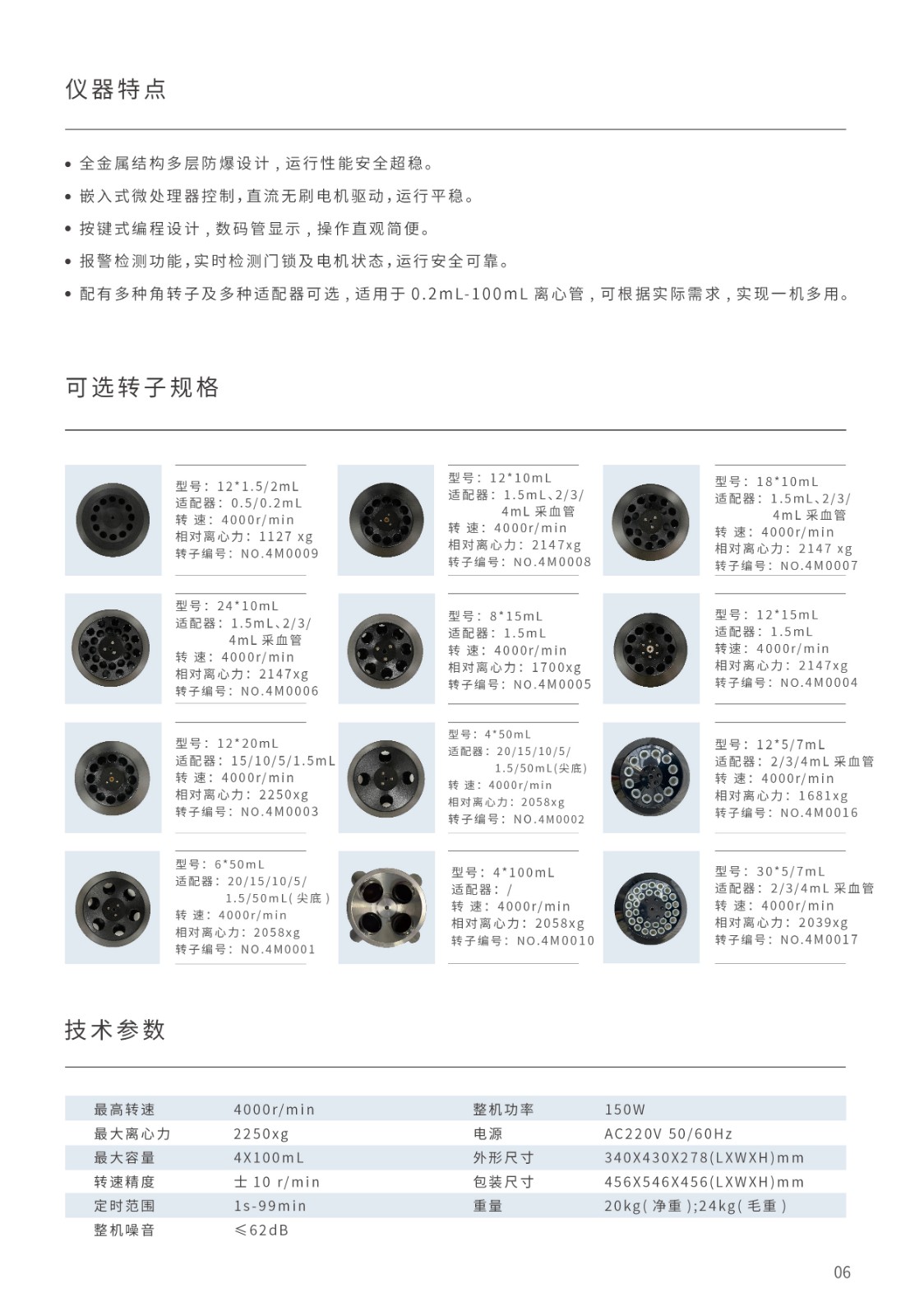 转速:4000转,容量:4x100ml,按键式编程设计,数码管显示