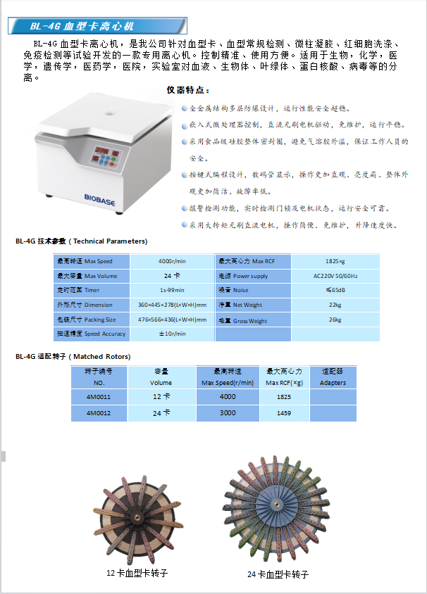 博科生物血型卡离心机BL-4G