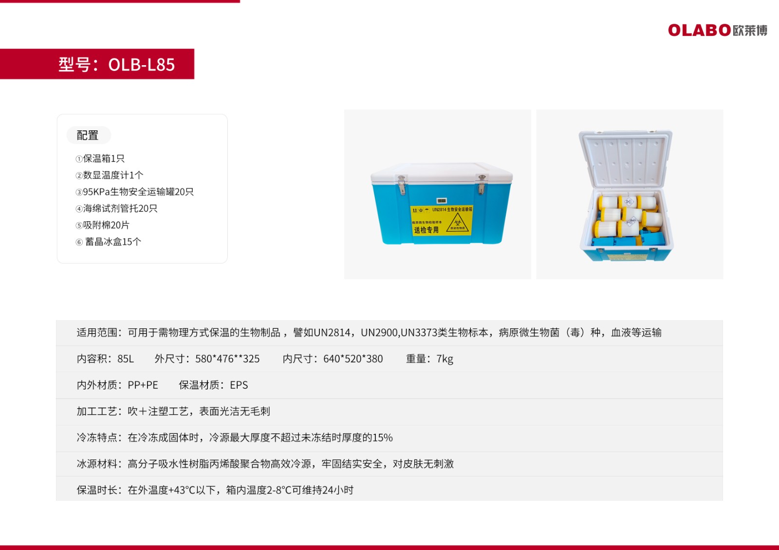 OLABO欧莱博生物安全运输箱OLB-L85