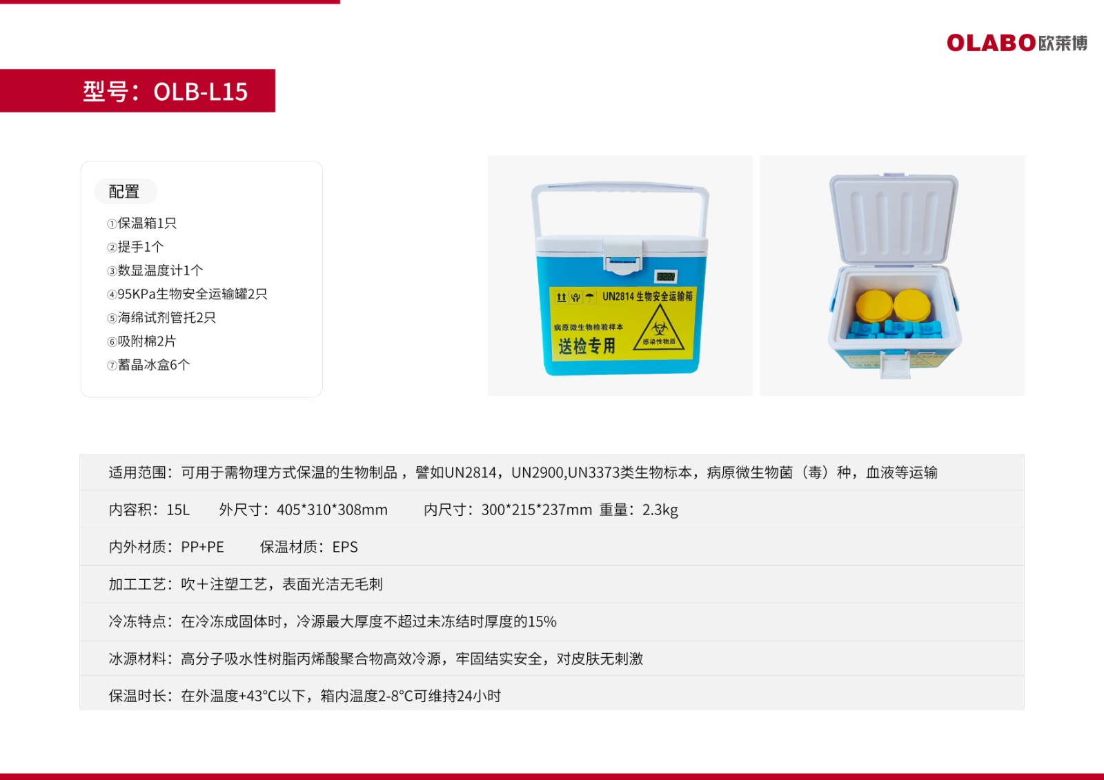 保温箱1只 数显温度计1个 95KPa生物安全运输罐20只, 海绵试剂管托20只 吸附棉20片 蓄晶冰盒15个 |