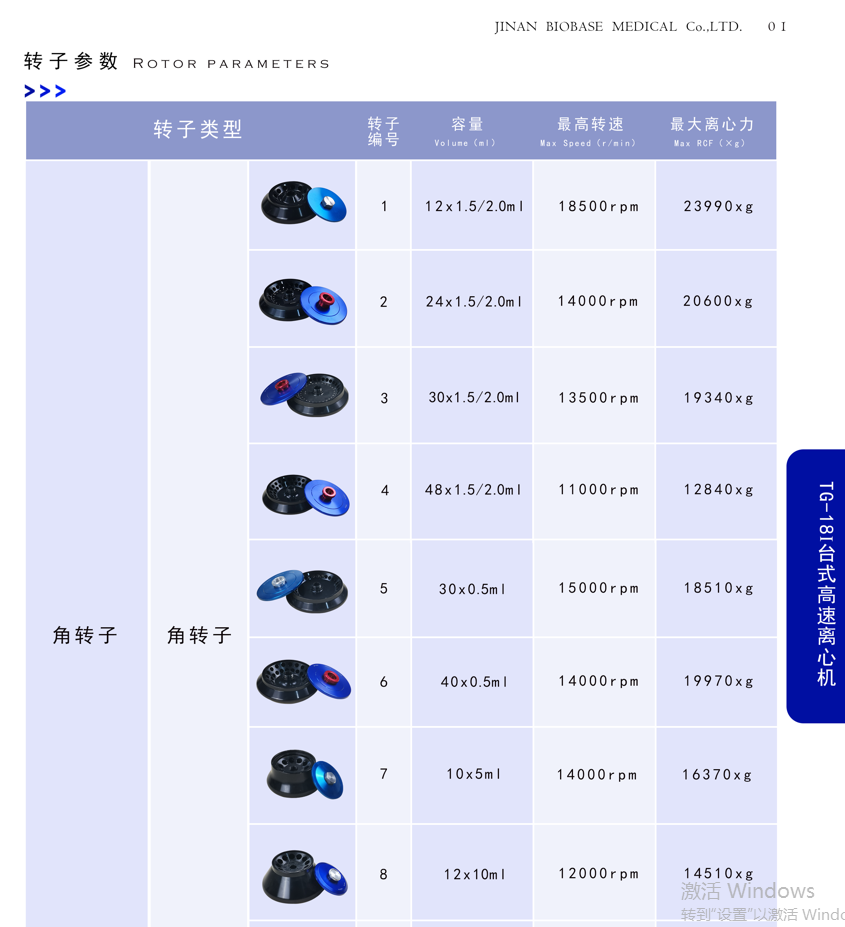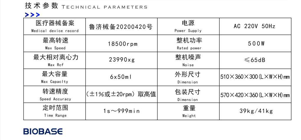 转速:18500rpm,转子容量:6*50ml